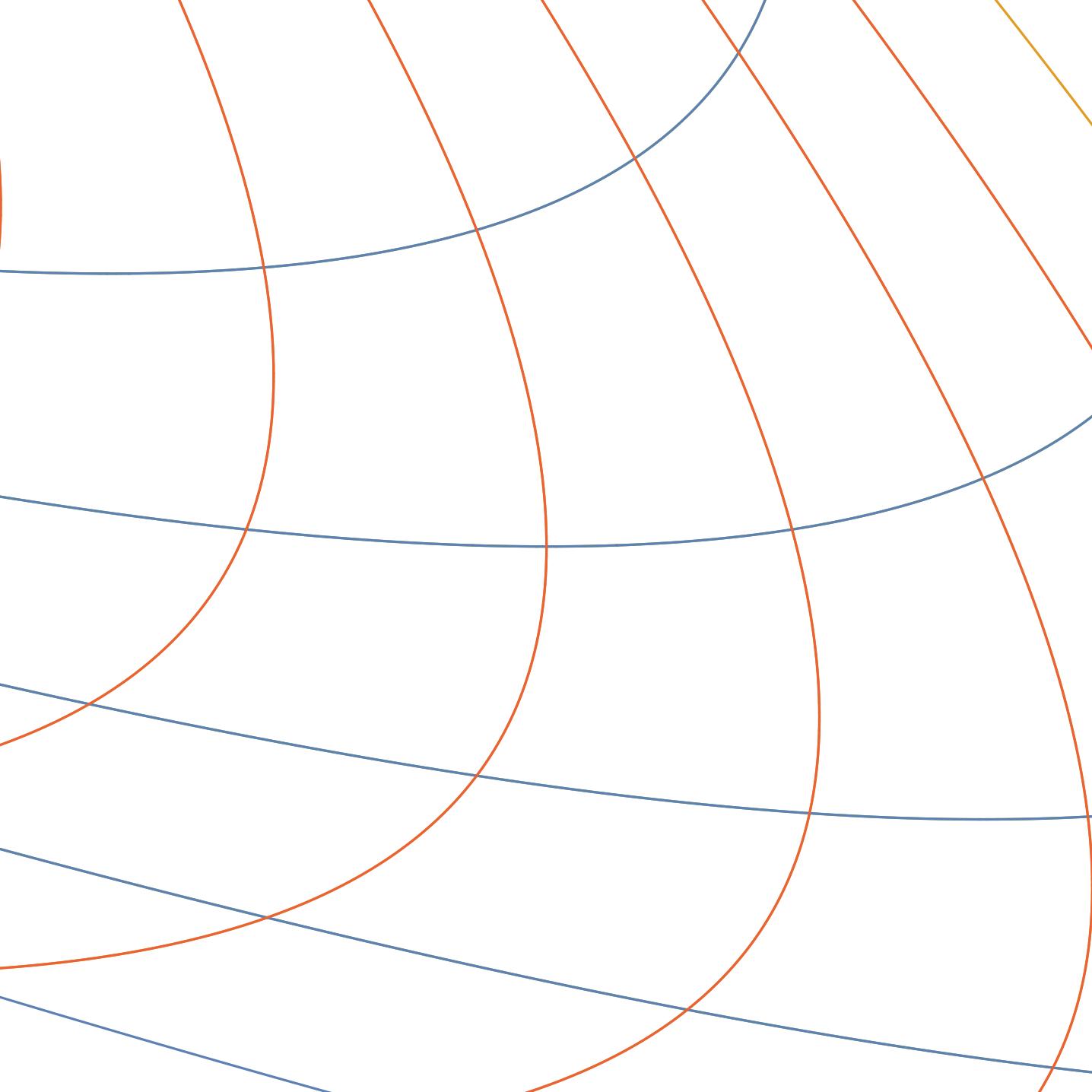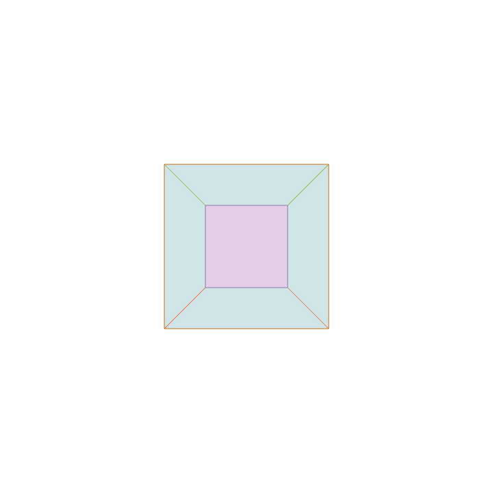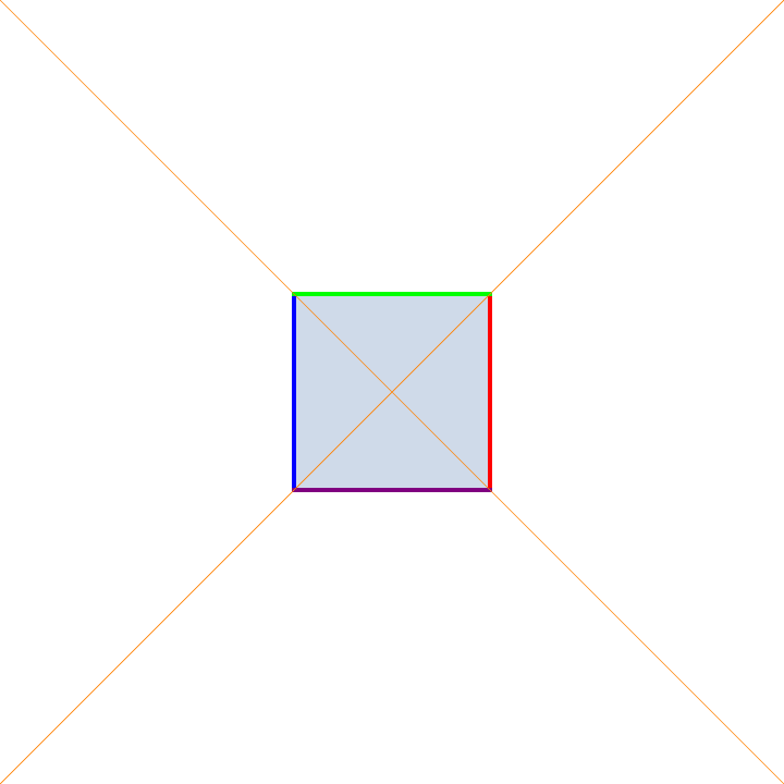 A square undergoing projective hyperbolic rotations. These maps preserve the orange lines in such a fashion where one is a line of contraction and the other is a line of expansion. The factors of expansion and contraction along these lines product to one. These are the analogue of hyperbolic rotations in the Minkowski plane that preserve the Minkowski metric $ds^{2} = dx^{2}-dy^{2}$.