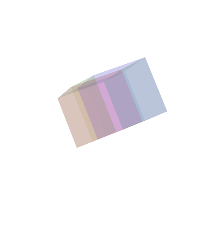 Here is an orthogonal projection of a rotating four dimensional cube being projected onto a three dimensional hyperplane. The four dimensional cube is made of three dimensional `faces', and the cube is non-generic position much like the first animation. There are three dimensional faces that are projected to two dimensional squares throughout this animation.